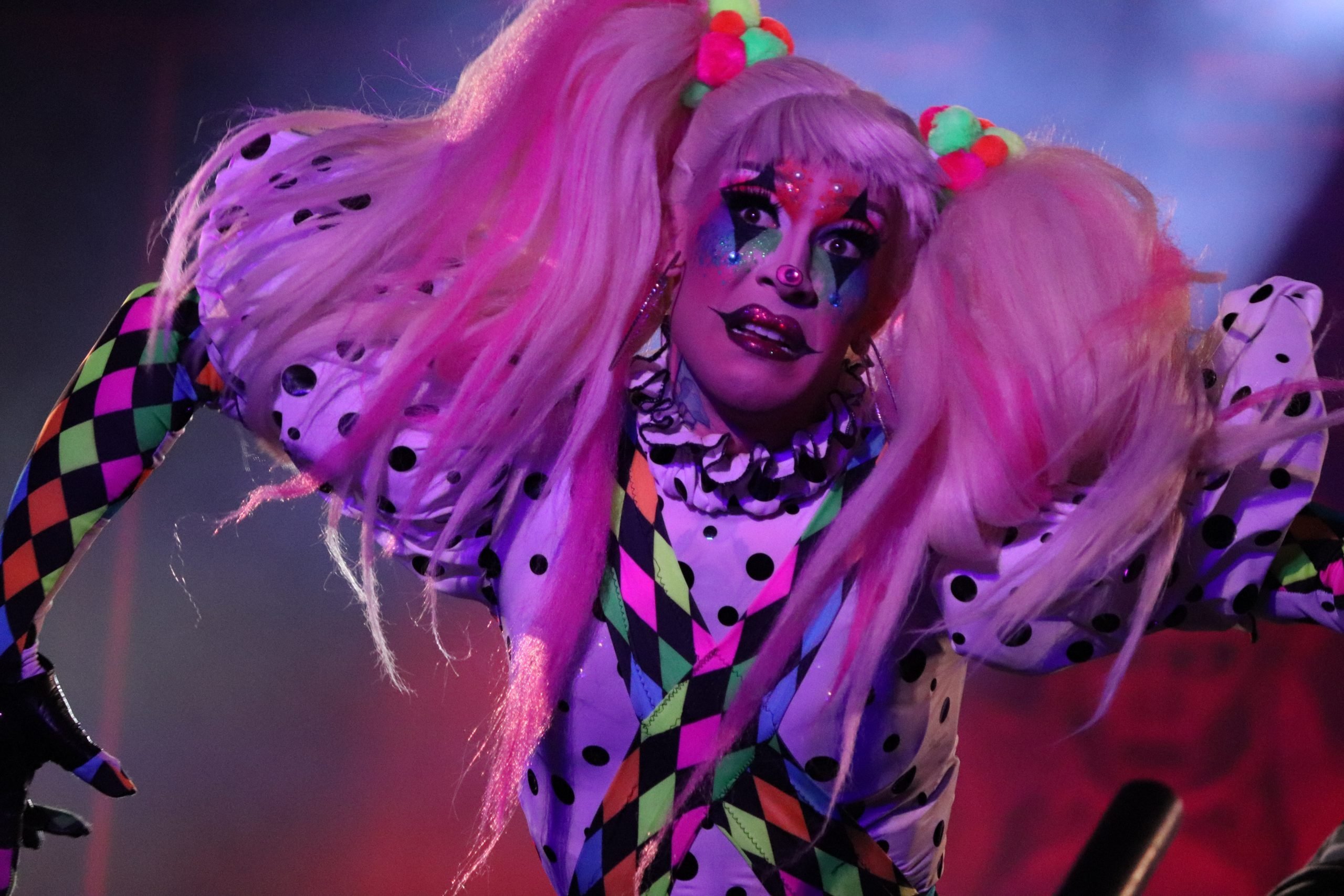 Kameron Michaels was a rather wicked clown, laughing hysterically at the audience and wearing perhaps the most amazing of the evening’s costumes.