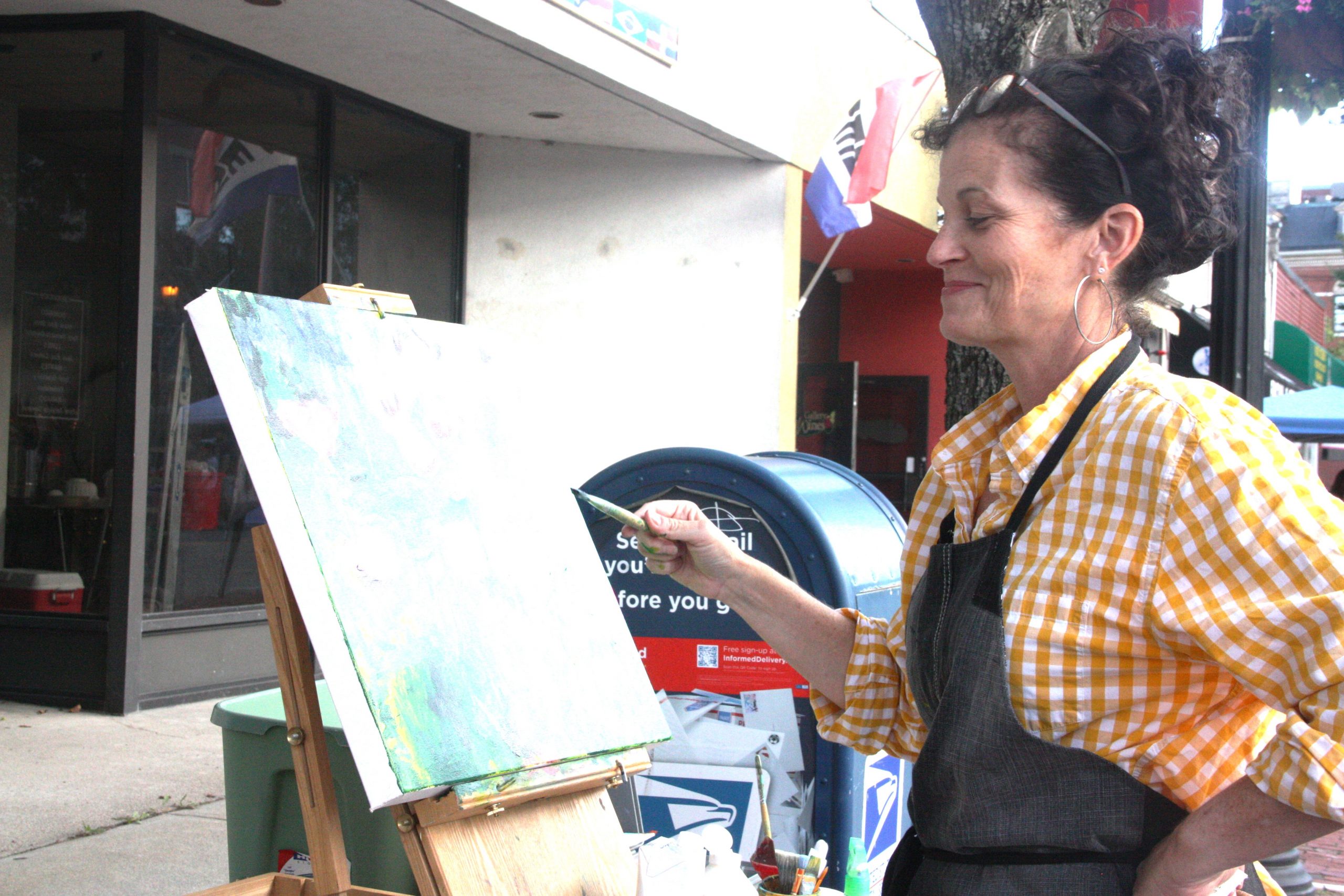The cars were not the only pieces of art at the event. The preservation framer art gallery had a live painting session outside of its building, with artist Mary Ellen Cusack creating new works of floral arrangements in real-time.