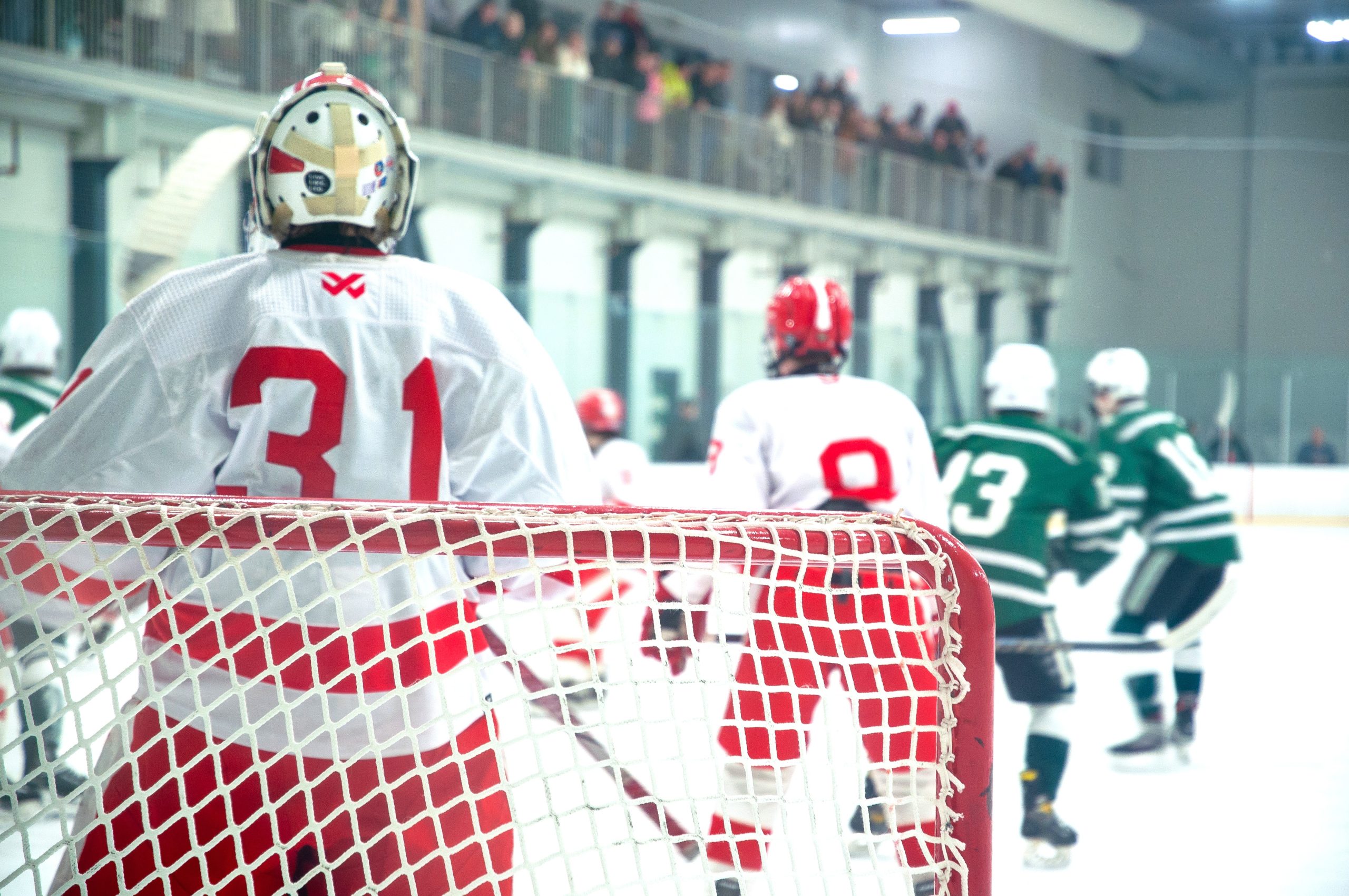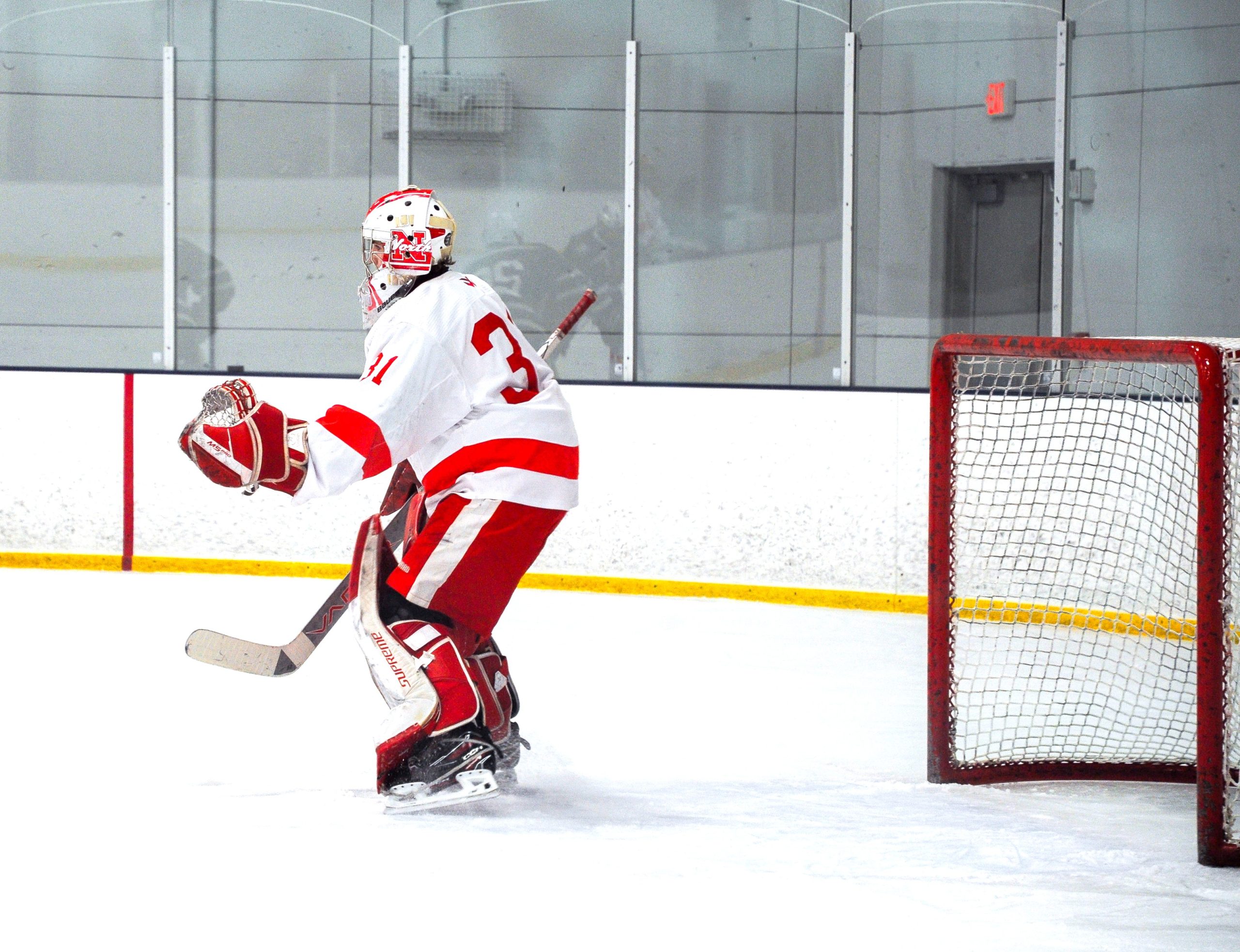 Goalie Will Bachand (Number 31), guards the goal against the Canton Bulldogs. PHOTO BY AMBER ANGOVE