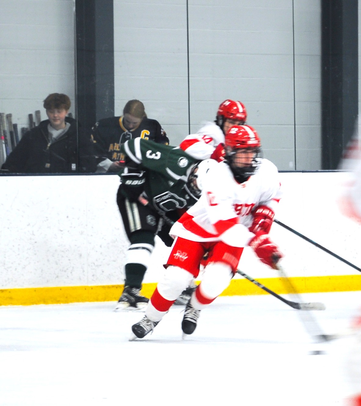 The North Attleborough Red Rocketeers varsity hockey team faced off against the Canton Bulldogs on Feb. 12. Canton won, 4-1. PHOTO BY AMBER ANGOVE