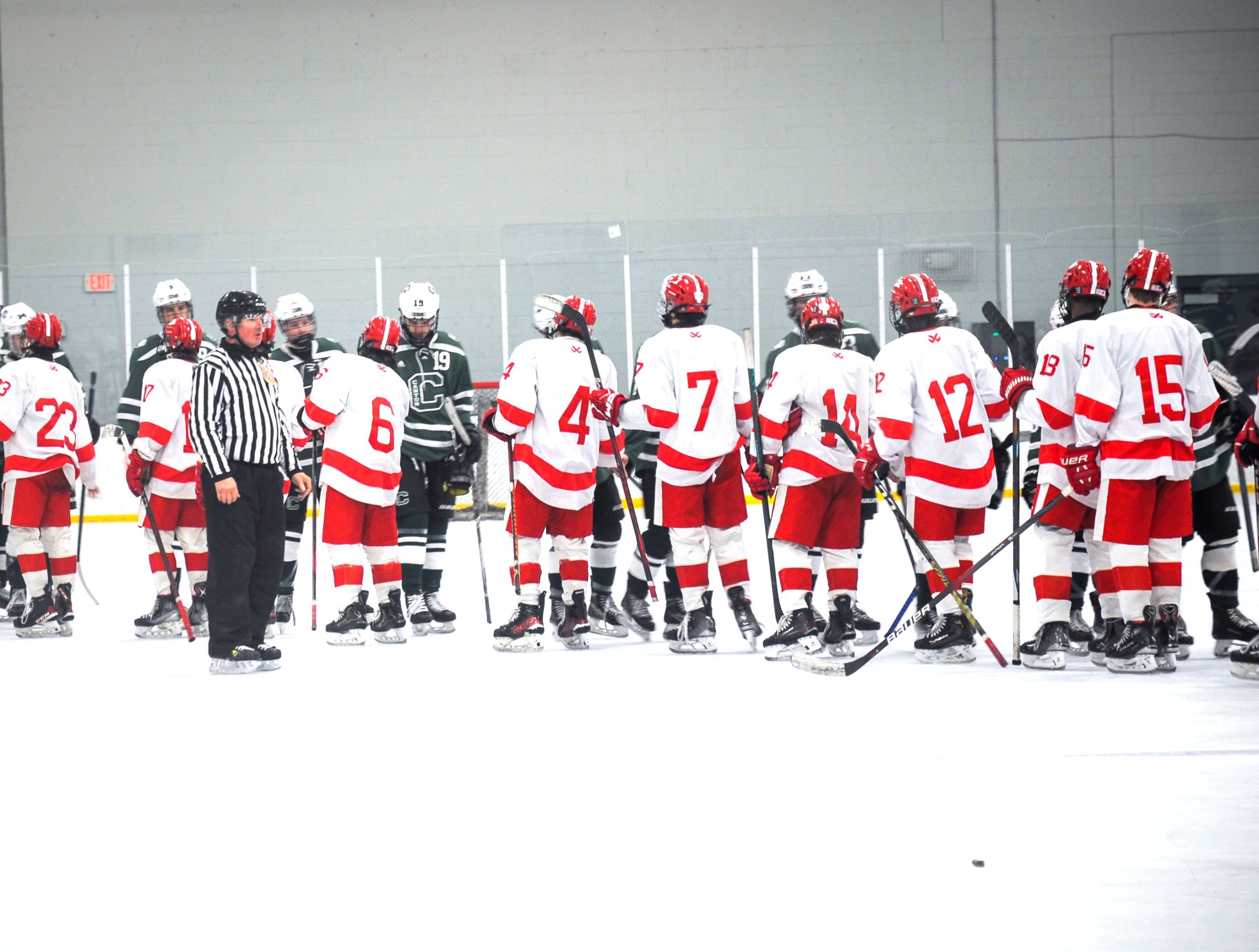 North Attleborough’s boys hockey team thanks Canton High School for the game. PHOTO BY AMBER ANGOVE