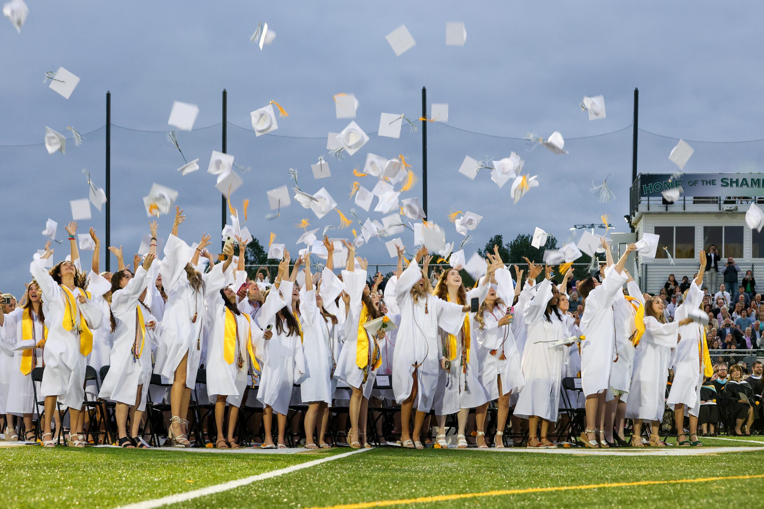 Once the speeches concluded, the graduates joined together to sing Bishop Feehan’s “Alma Mater,” closing out their four years together one last time in unison. DaRosa led her fellow classmates in the cap toss, counting to three before the mortarboards were thrown into the sky.
