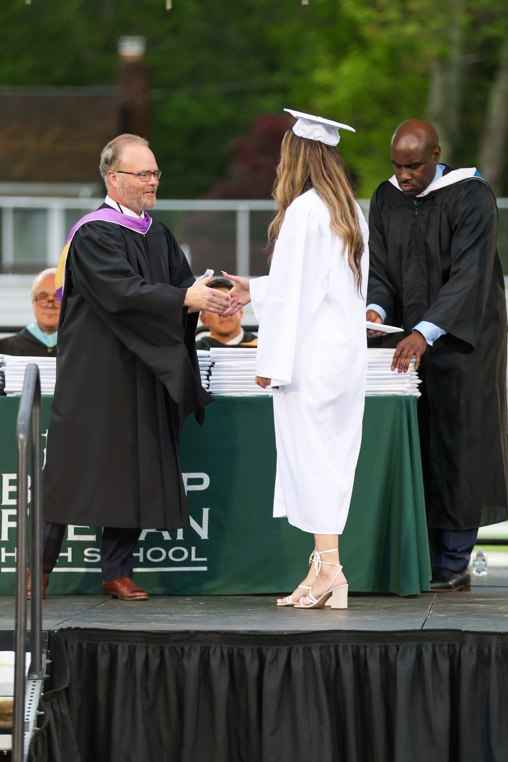 The final speech of the night was given by Principal Sean Kane, who called the Class of ‘25 “extraordinary” and “unforgettable.” Kane presented the Man and Woman of the year Award to two students who best exemplified the ideals and values of Feehan: Aidan Neary, who is attending West Point Military Academy in the fall and Adrianna DaRosa, who will be going to Marist University.