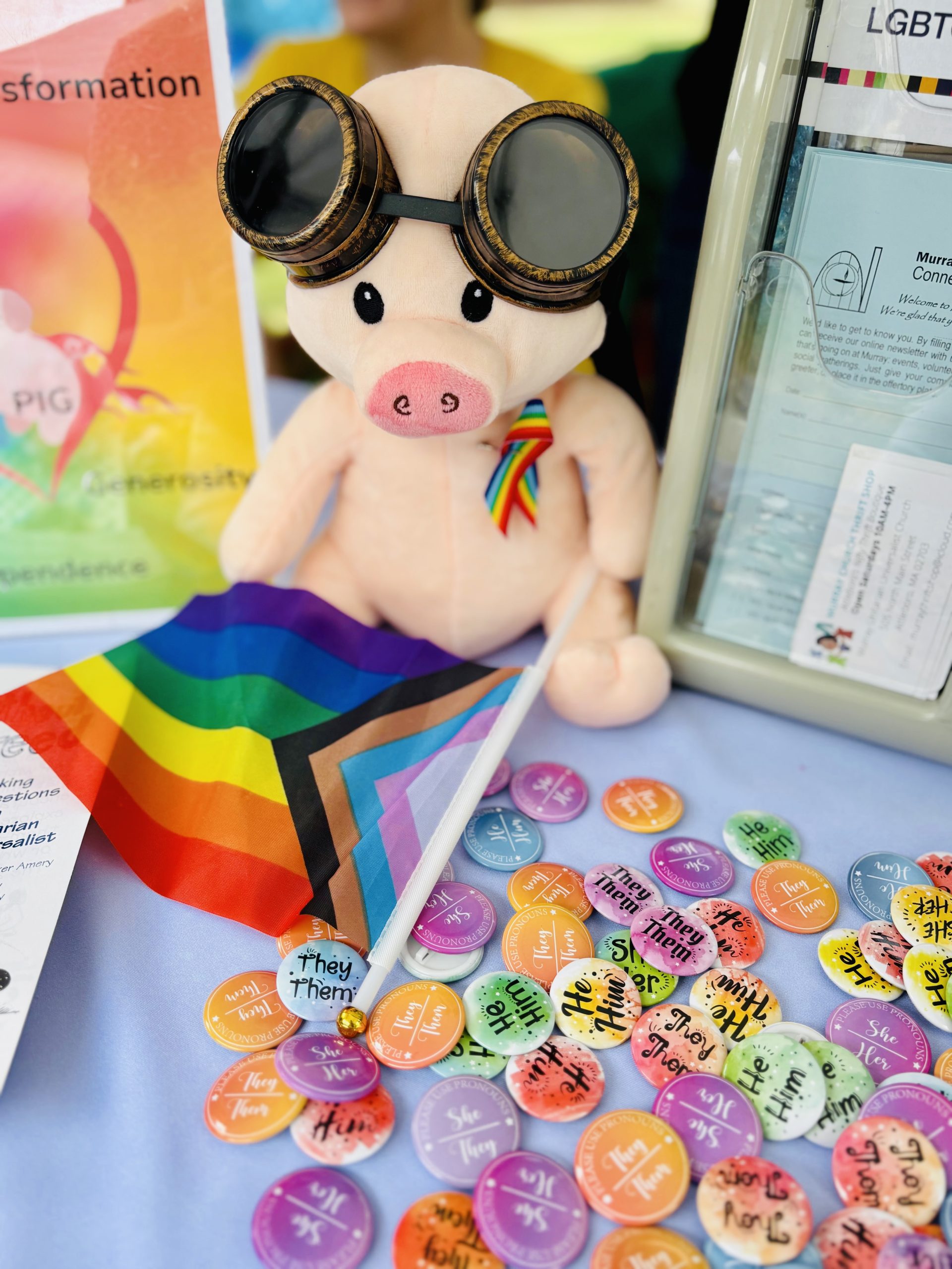 One such place of worship was Murray Unitarian Universalist Church of Attleboro, which joined Goldfish Swim School of Attleboro, Harmony Chiropractic, Peak Pediatric Care and Attleboro Community Theater as a sponsor of the festival. Carol Konvalinka-Connolly, director of religious exploration, handed out “pronoun pins” throughout the day to promote the church’s key values, such as equity, transformation and generosity.