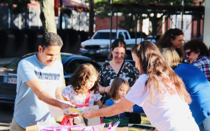 Outside Grace Church there were tables set up for the Parks and Recreation Department, police and fire, and more for the 2022 Back to School Shuffle. Staff File Photo/Max Bowen