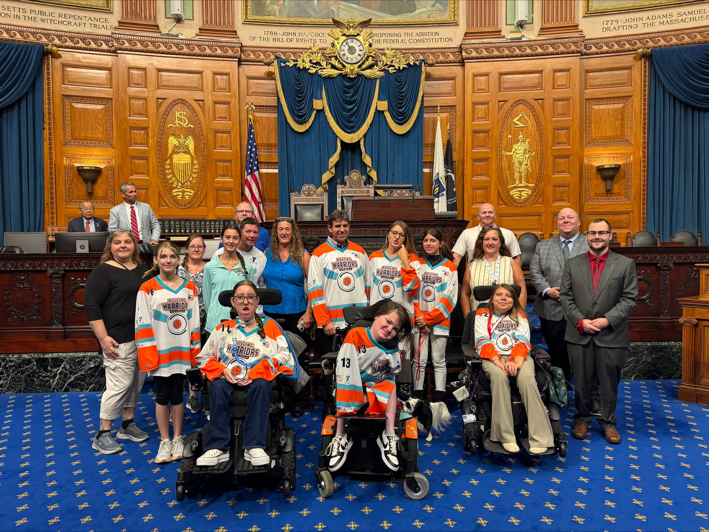 On Aug. 21, state Rep. Adam Scanlon, state Sen. Paul Feeney and Lt. Governor Kim Driscoll welcomed the Rolling Warriors to the Massachusetts State House to honor their achievement of winning gold at the North American Volt Hockey Championship.