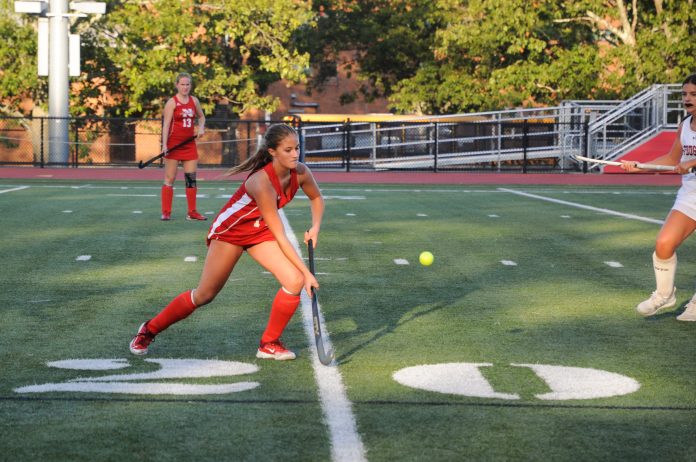 Number 1, Capt. Julia Smith (Number 1) on the field against Stoughton on Sept. 4. PHOTO BY AMBER ANGOVE