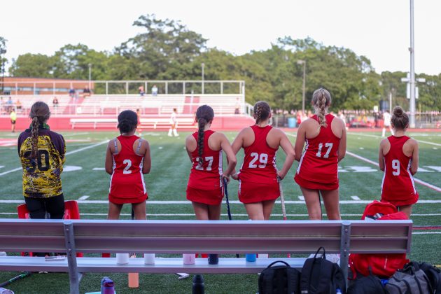 The Red Rocketeers look on as their team dominates Taunton during the Sept. 9 game, which North won, 4-1. PHOTO BY LINDSEY FLIGER