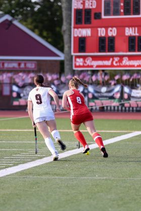 Bailey Converse (Number 8) goes for a goal against Taunton during the Sept. 9 game. North won the game, 4-1. PHOTO BY LINDSEY FLIGER