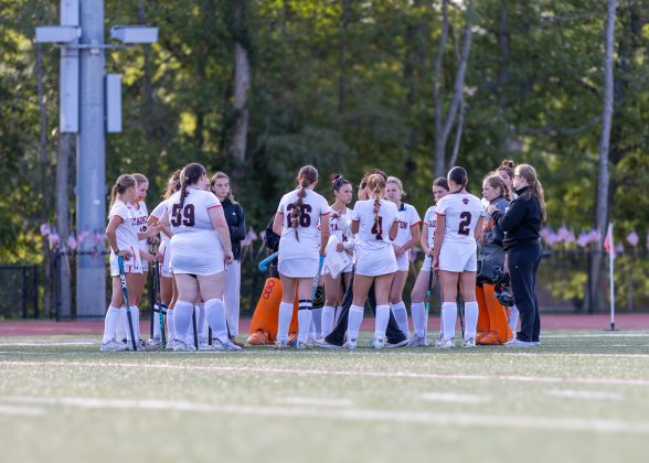 Riley Charron (Number 20) tries to block Taunton from making a goal during the Sept. 9 game. PHOTO BY LINDSEY FLIGER