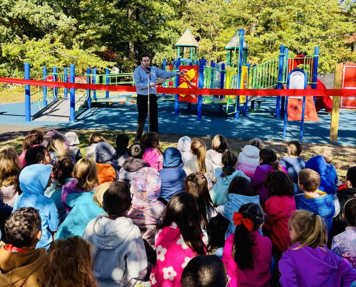 Jeremy Floman, a teacher at Martin Elementary and member of the Martin School Association, which has been involved in the project since its start, spoke to the crowd of kindergarten and first grade students about how the idea for an ADA-compliant playground came to be.