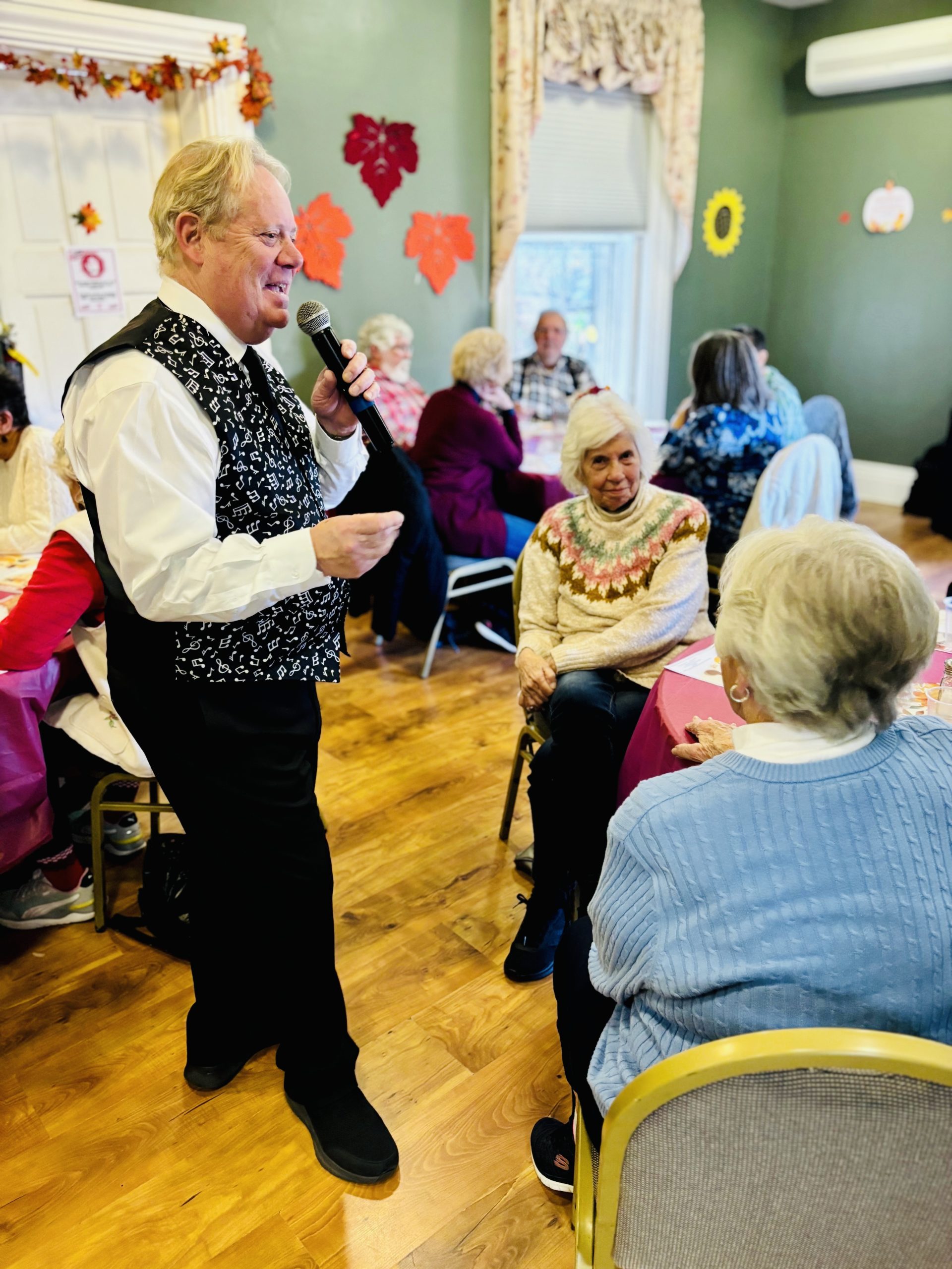 Pat Worthington enjoys a song from Bobby Bourassa. PHOTO BY GEENA MONAHAN