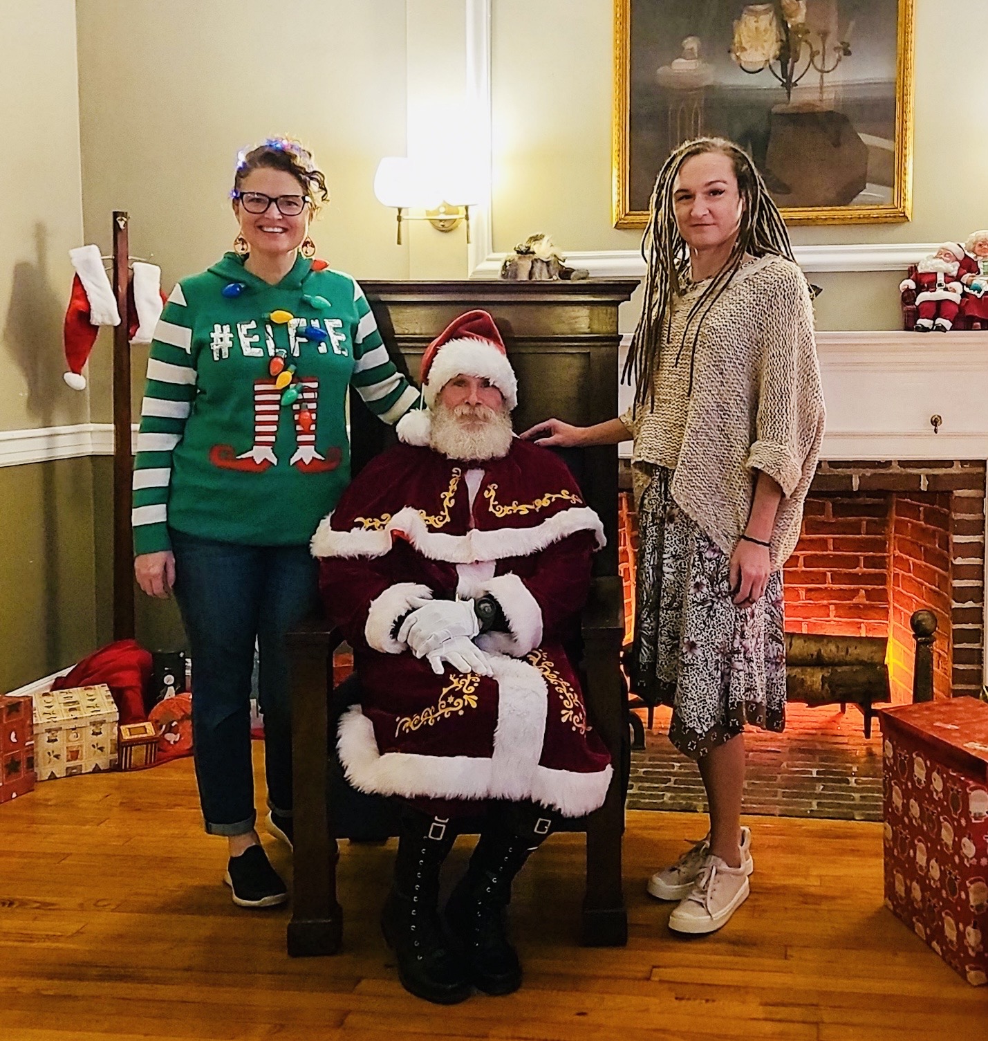 Santa stopped by The Masonic Lodge for some fun and photos taken by Hoppin Hill Photography for the North Attleborough Small Business Collaborative Kringle Mart Holiday Stroll on Nov. 22. Pictured here are Annie Slobogan, collaborative presidents, and Brooke Baker of Hoppin Hill Photography. PHOTO BY LINDSEY FLIGER