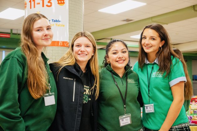 [From left] Brynn Morrison, Emeryson Yuszczak, Kellet Lydon, and Gemini Cerritos help set up the 2025 Santa Shop at Bishop Feehan High School. PHOTO BY AMBER ANGOVE