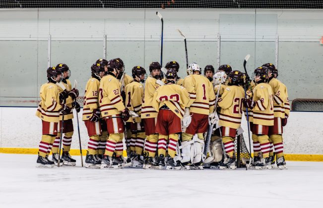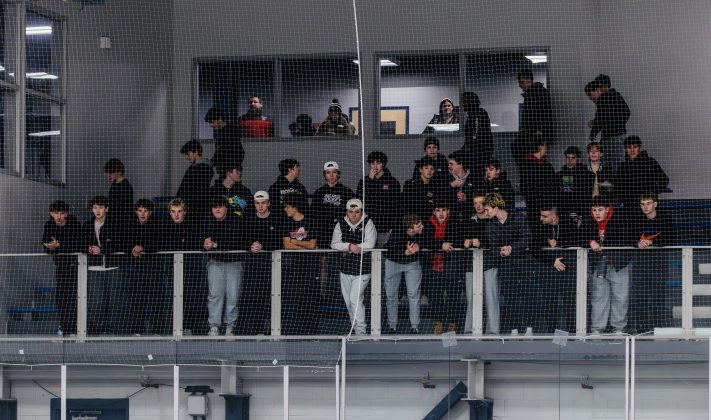 The Rocketeers watch from the sidelines as they defeat Newburyport 2-1 in the first round of the MIAA D2 Championship Tournament on Wednesday, Feb. 25. PHOTO BY LINDSEY FLIGER