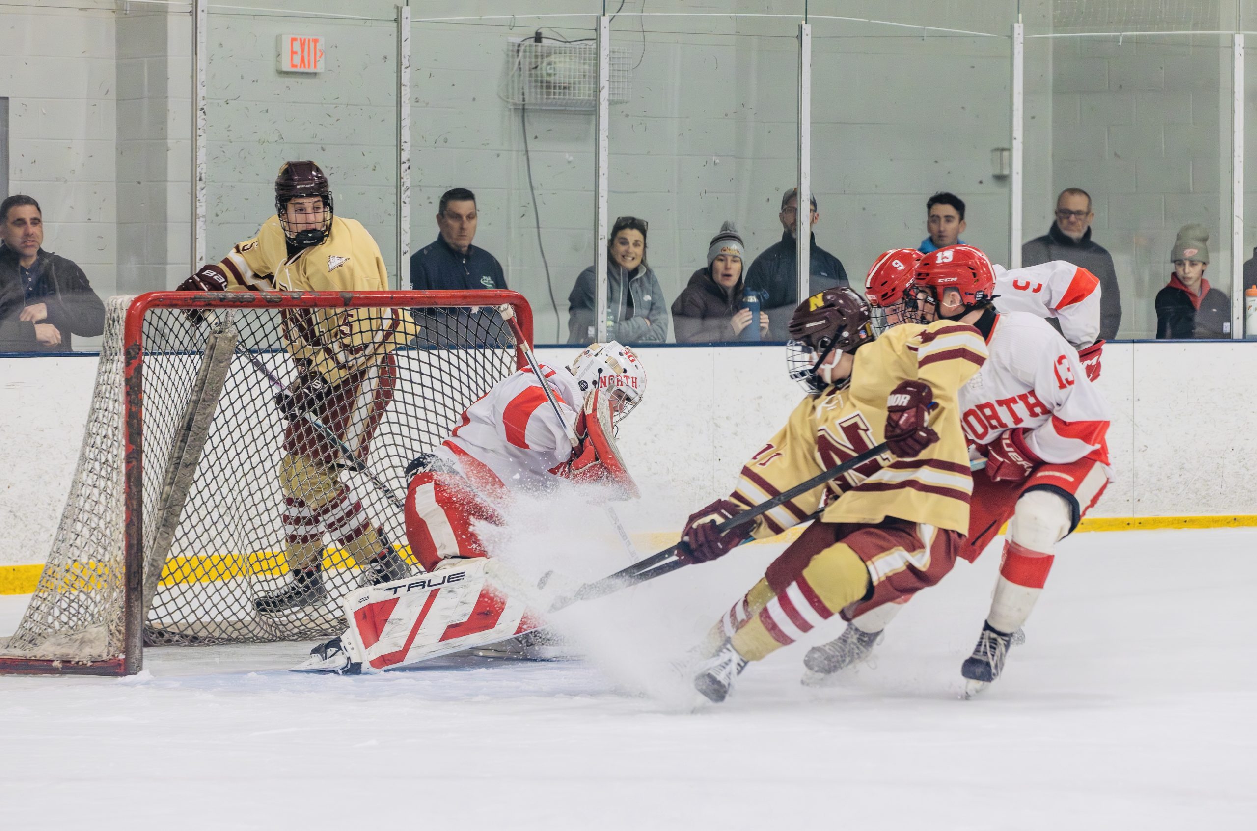 North's goalie, Evan Sawyer [Number 30] makes a game-winning save against Newburport at the first round of the MIAA D2 Championship Tournament. PHOTO BY LINDSEY FLIGER