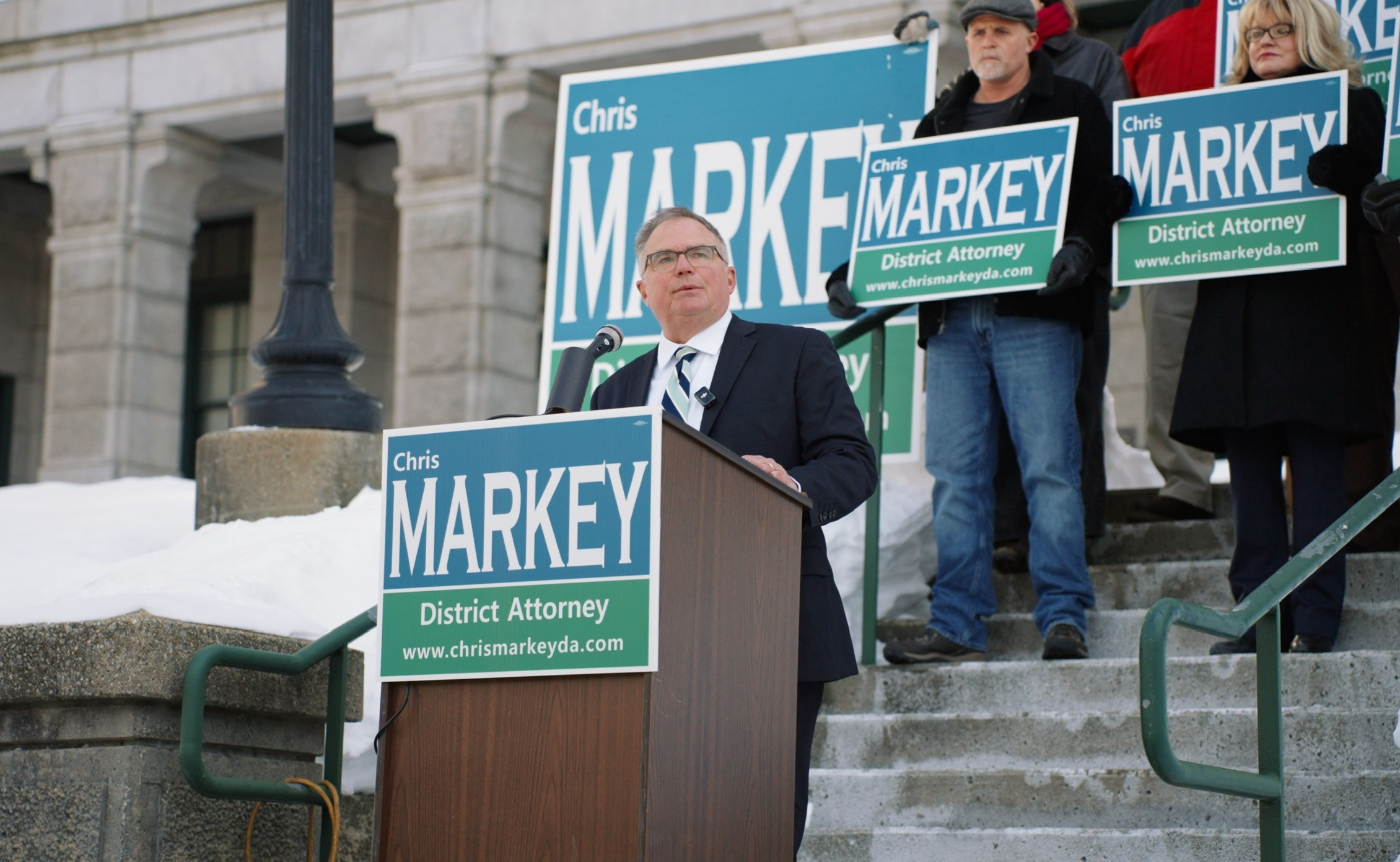 Markey is campaigning on his 16 years in the district attorney’s office, including 12 as an assistant district attorney and four as a victim-witness advocate.