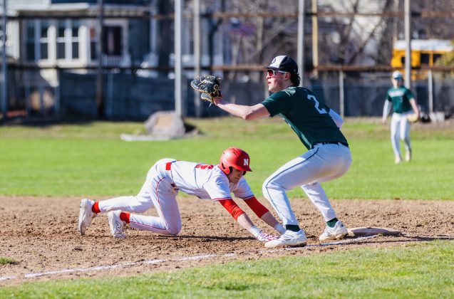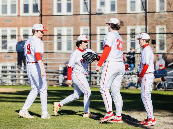It was a win for Big Red at their home opener against Canton in North Attleborough on Monday, April 6. PHOTO BY LINDSEY FLIGER